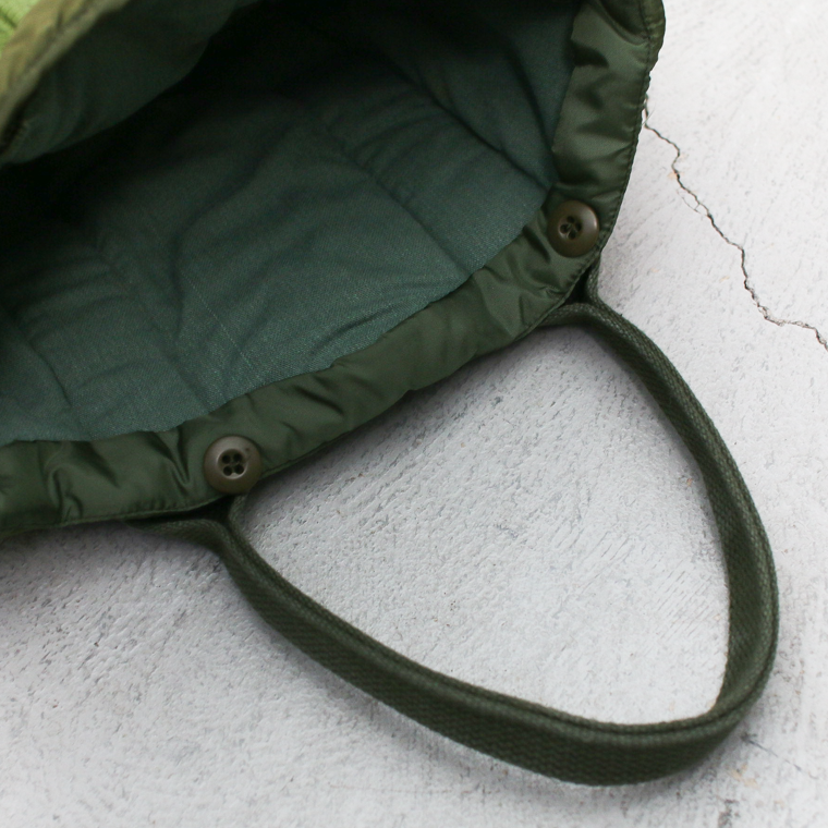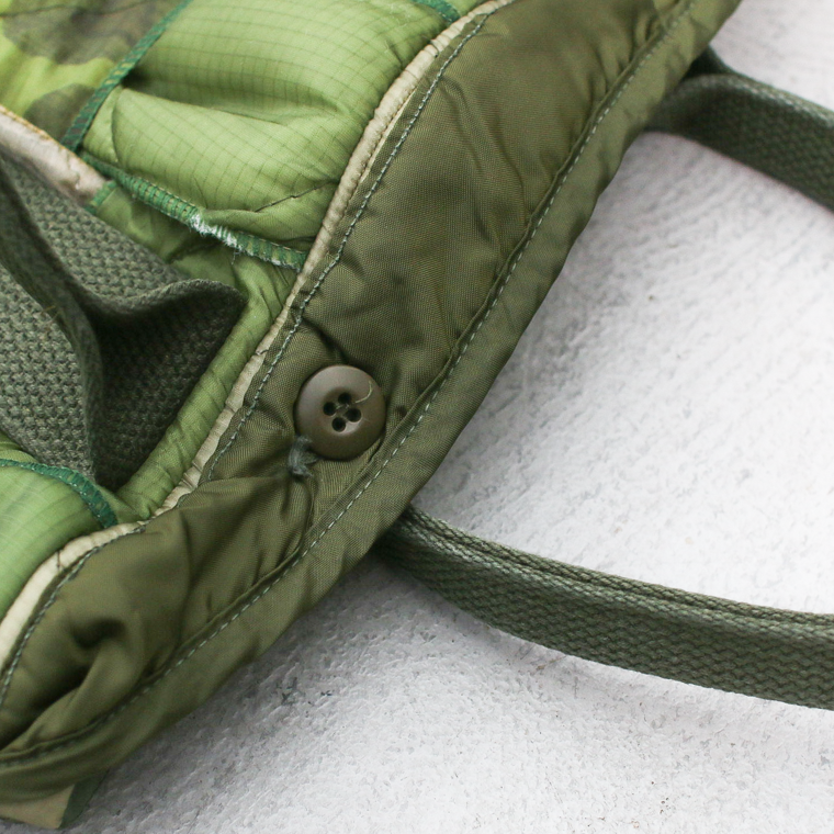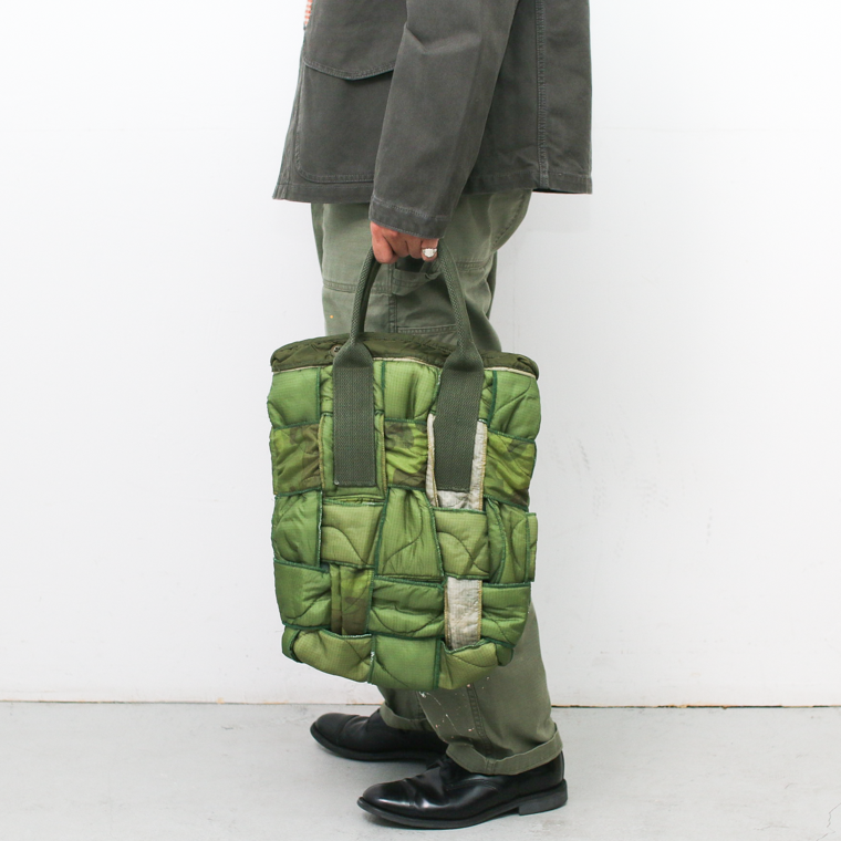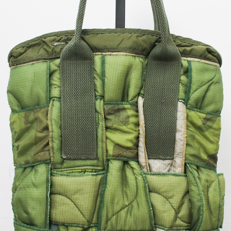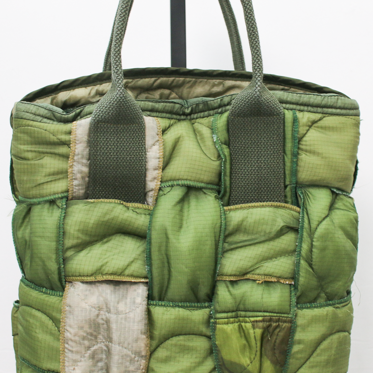 1970年代〜1980年代頃のアメリカ軍実物のミリタリーライナー生地を使用して、ハンドメイドで作り上げたトートバッグ。