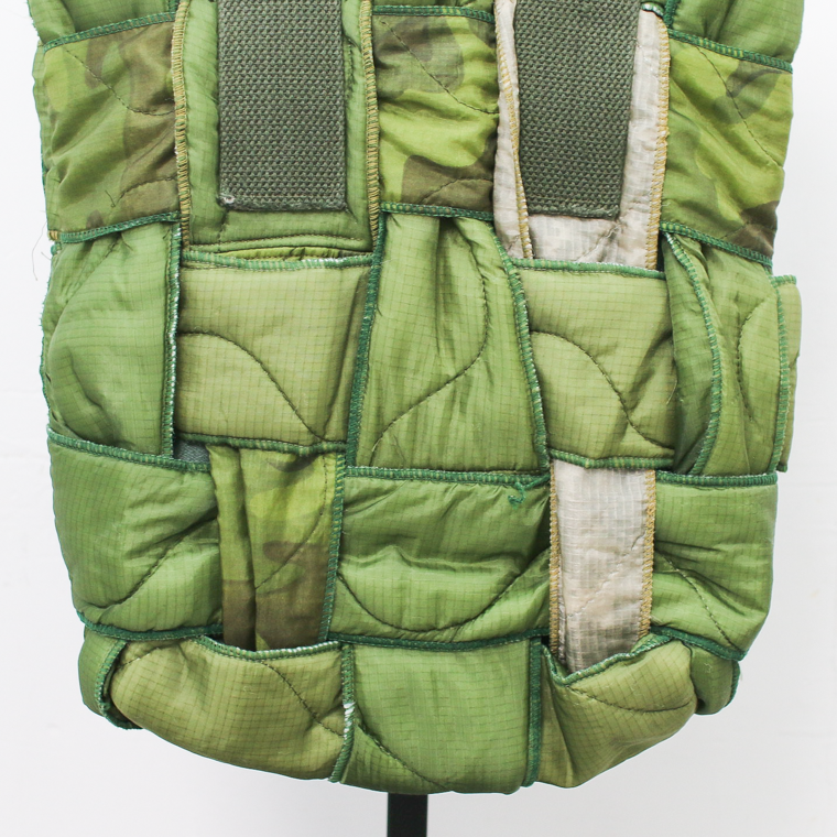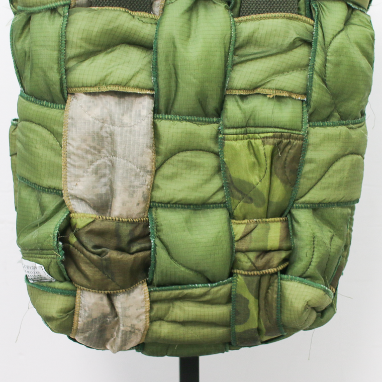 アメリカ軍のヴィンテージミリタリーライナーを解体し、生地を格子状に編むことで作った手間の掛かった逸品。
