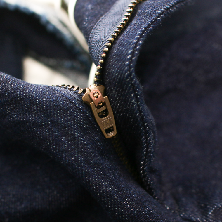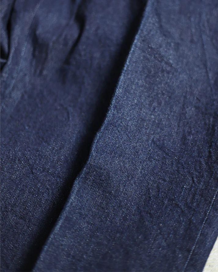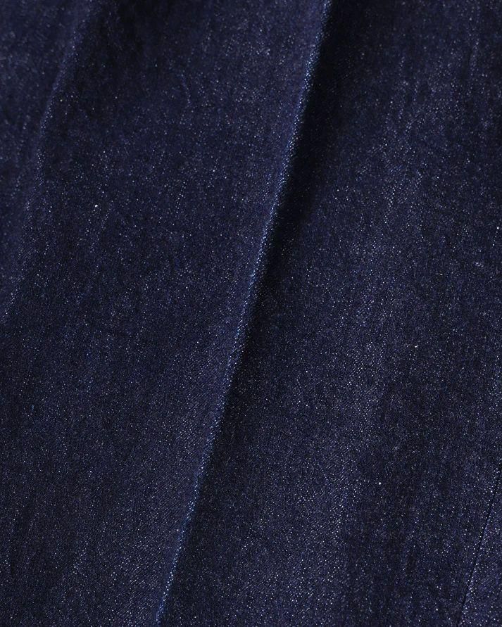 繊維が長めで安定感があり、デニムに最適と言える糸質です。染色にはピュアインディゴを採用し、着込むほどに鮮やかな青へと育つ色落ちを楽しめます。