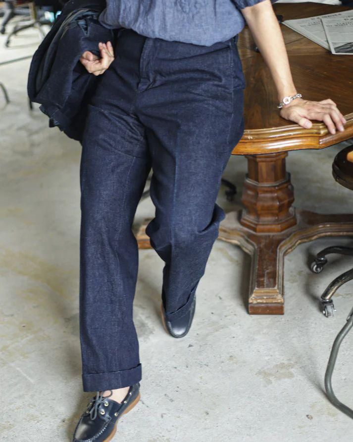 端正な表情を持ちながらもデニムならではの軽快さがあり、カジュアルなビジネスシーンから週末の街歩き、レストランでのひとときまで幅広く活躍。