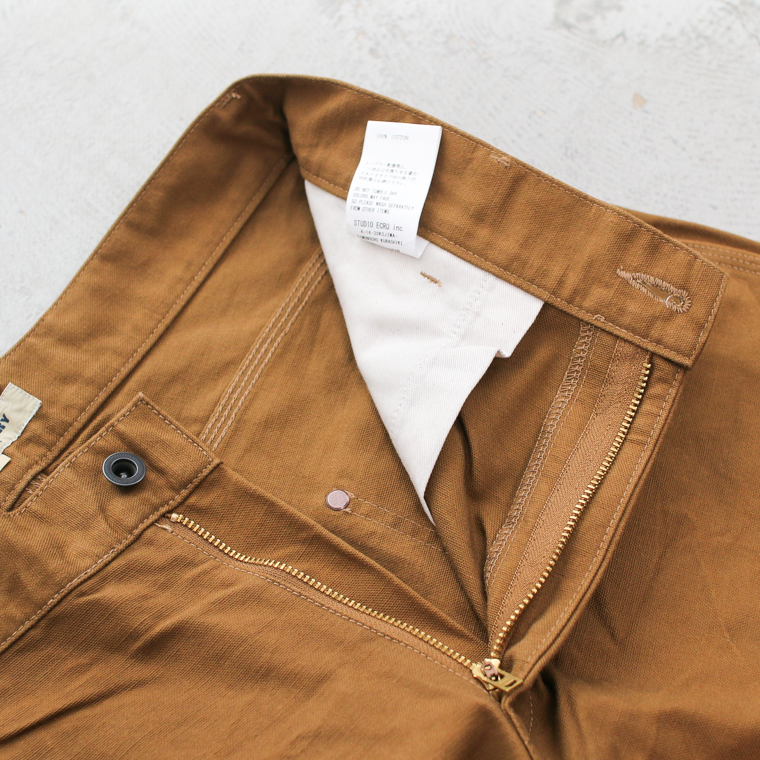 11オンスのコットンダック生地をFOB factoryオリジナルで製作し、ワークパンツとしてリリースしました。
