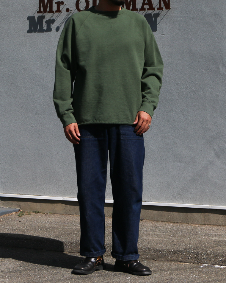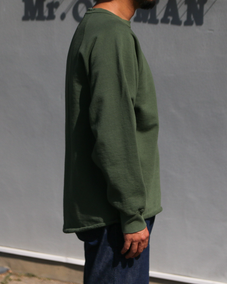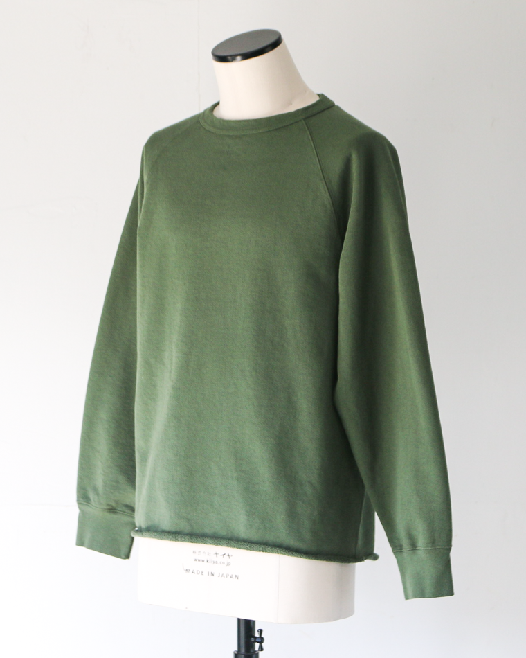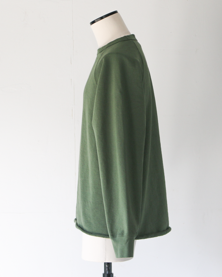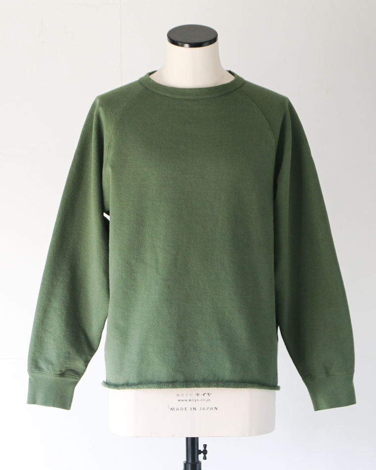 13オンスの米綿を使用したヴィンテージ感あるスウェット生地で、裾が切りっぱなしの特徴的なデザインのスウェット。