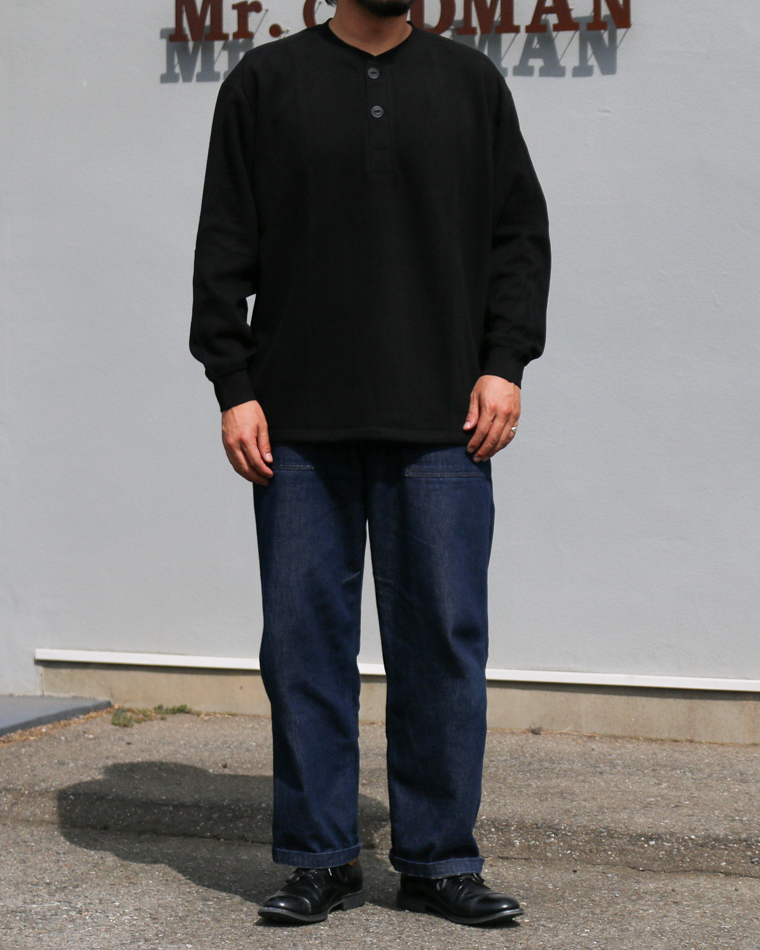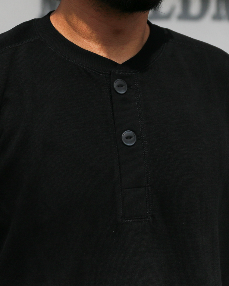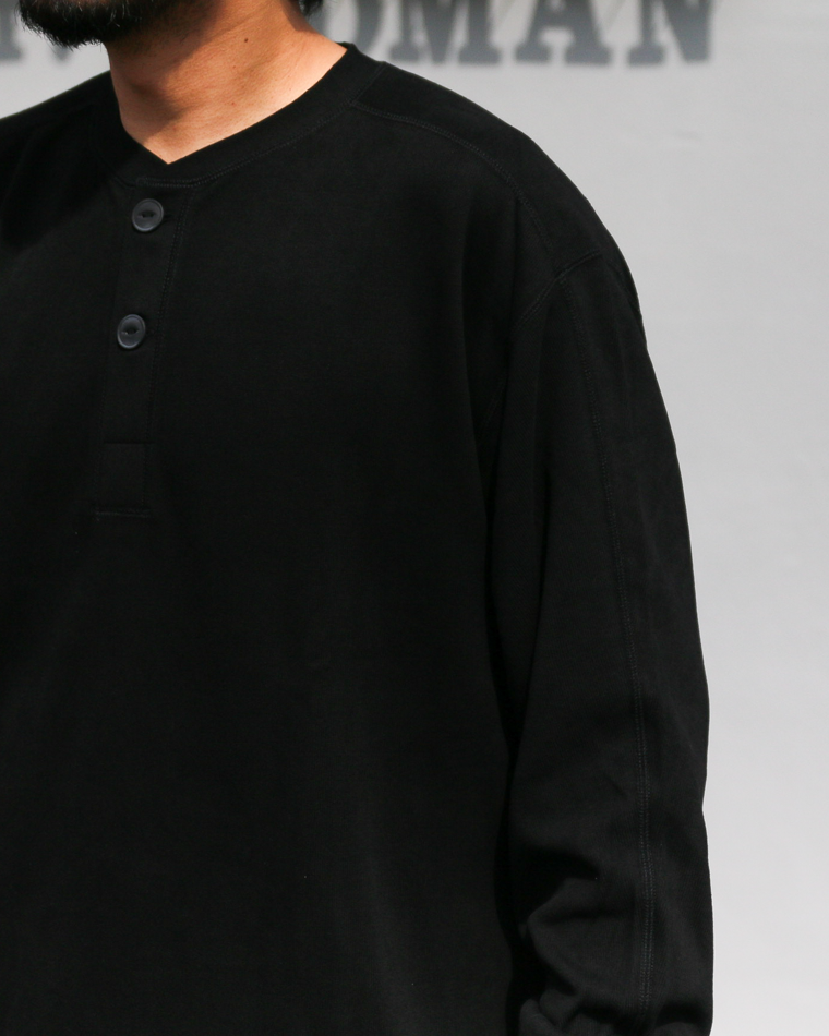 SEABEES シービーズ Knit & sewn Henley neck L/S T ニットソーヘンリーネックT ブラック