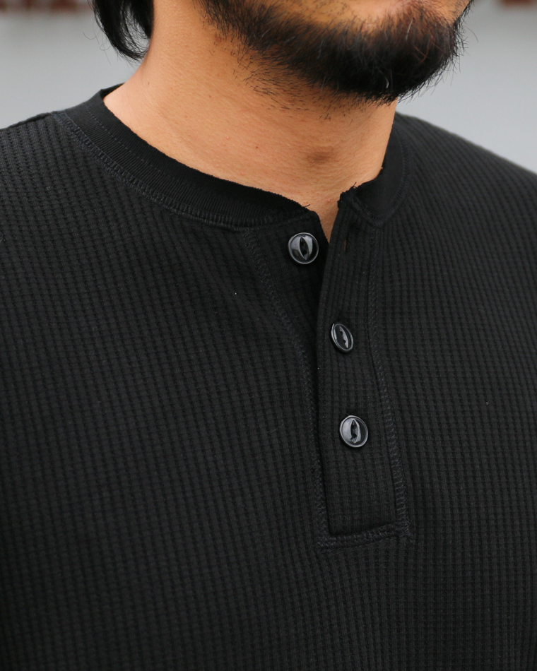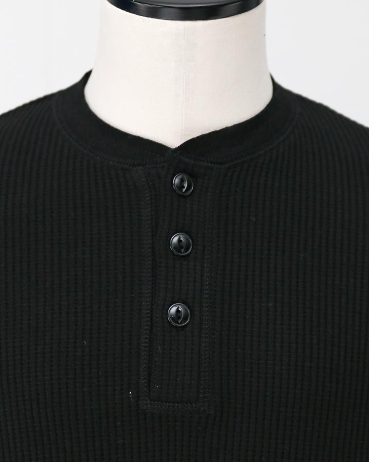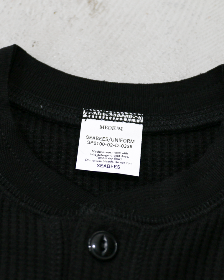 SEABEES シービーズ Pigment Henley neck Thermal L/S ピグメントヘンリーネックサーマルTシャツ ブラック