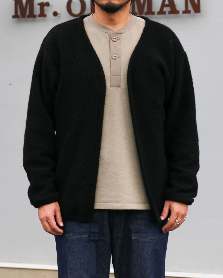 ふっくらと包み込まれるような最高の着心地は希少な丸編み機を使い、ゆっくり丁寧に編み立てたウールパイル生地の賜物。