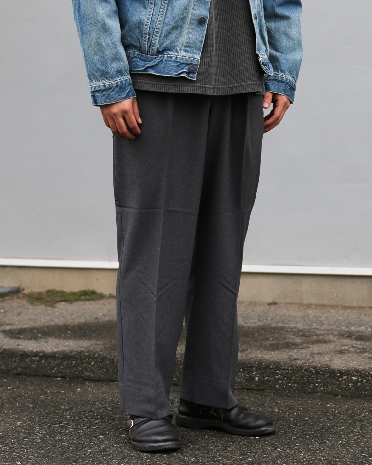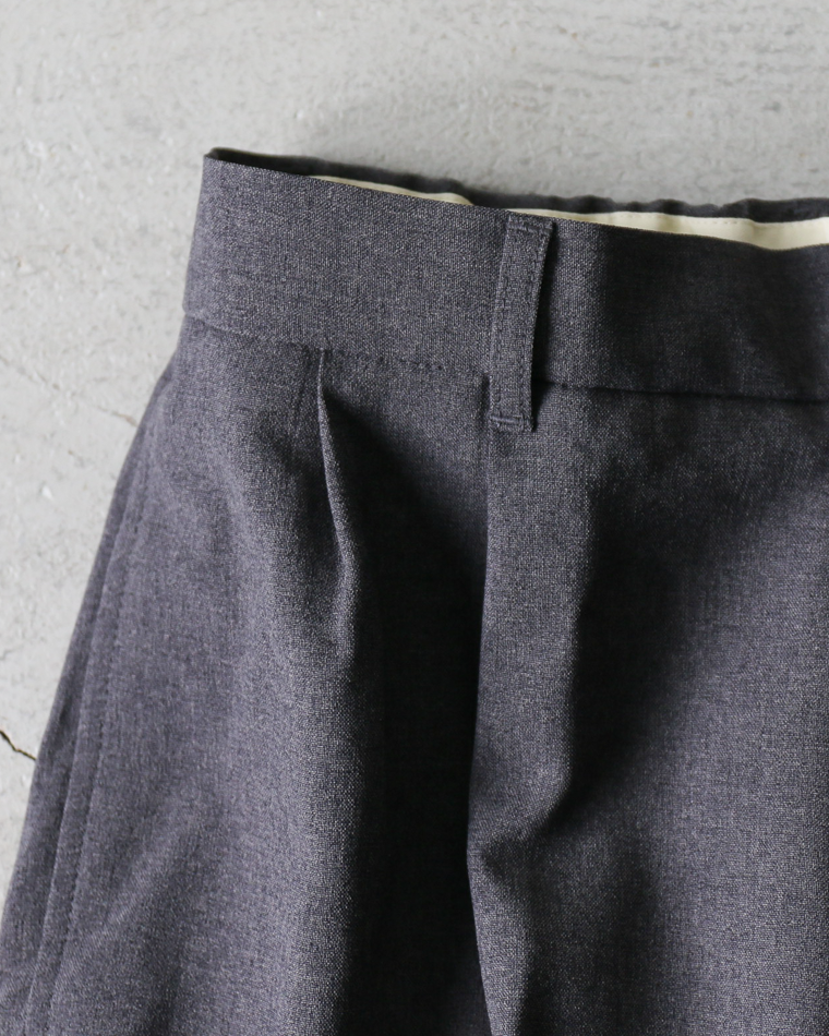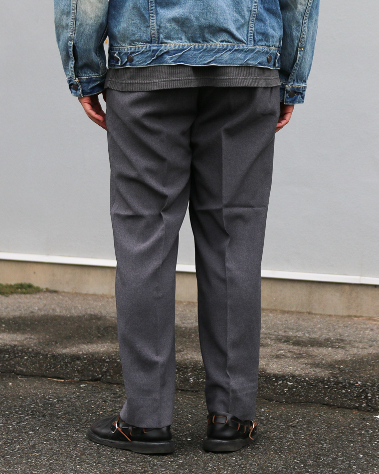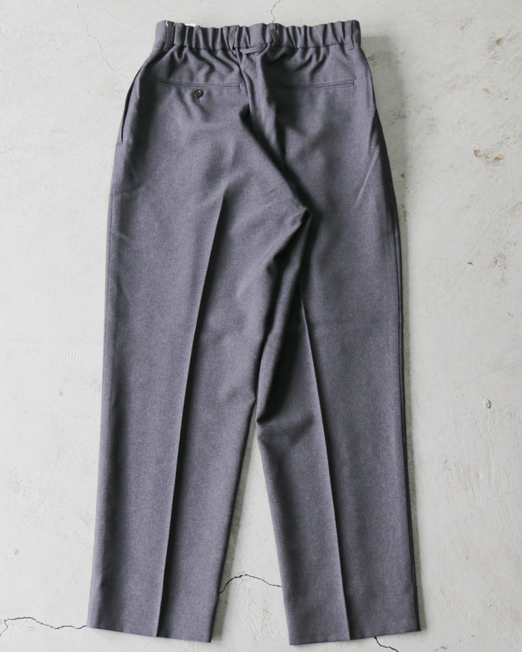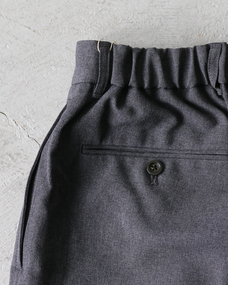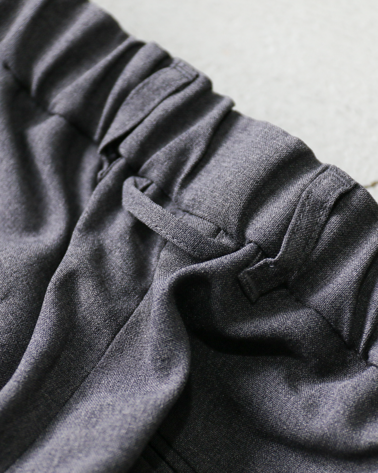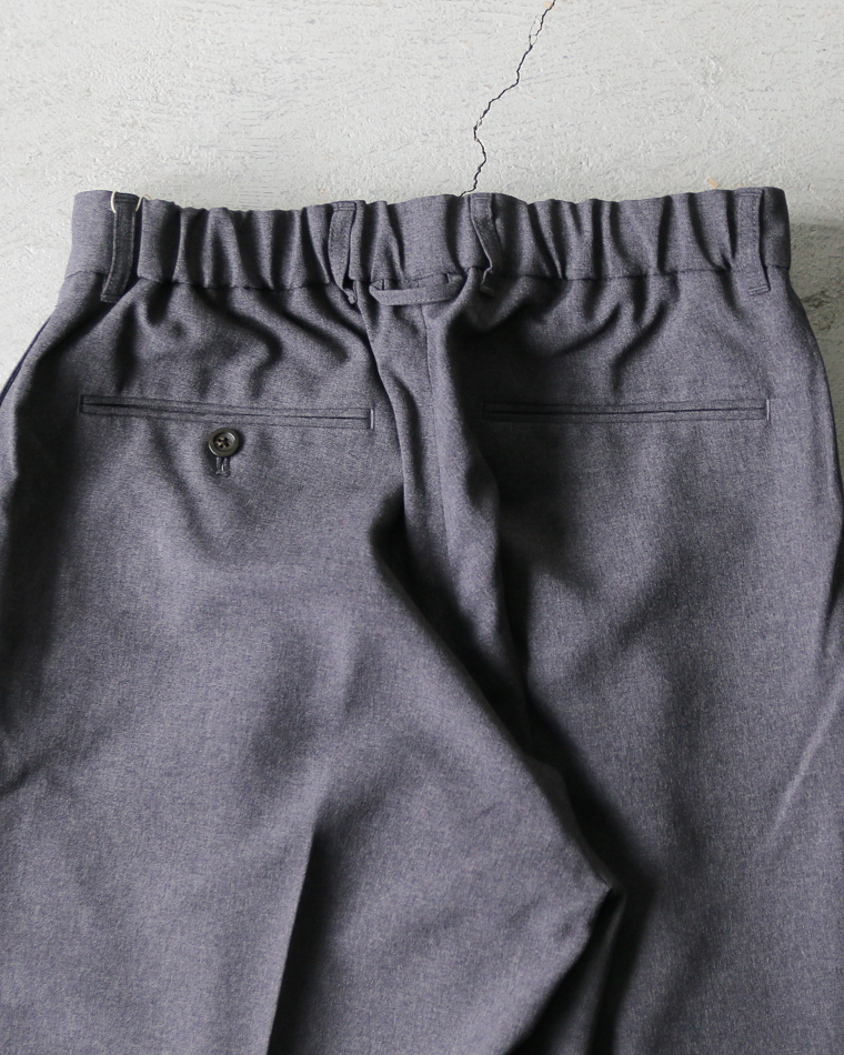 ウエスト後ろ半分はゴム仕様。ツータックを入れて全体に太めのシルエットです。