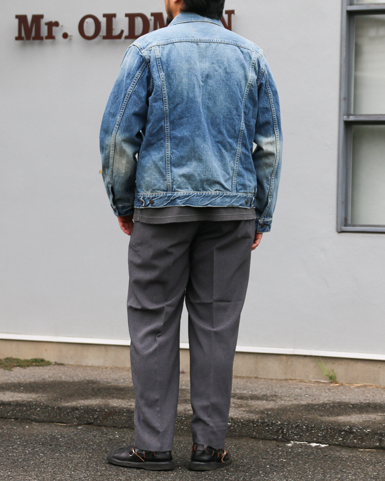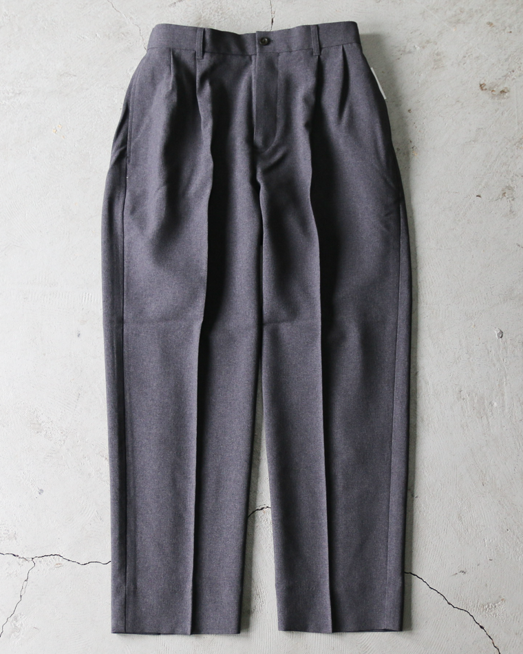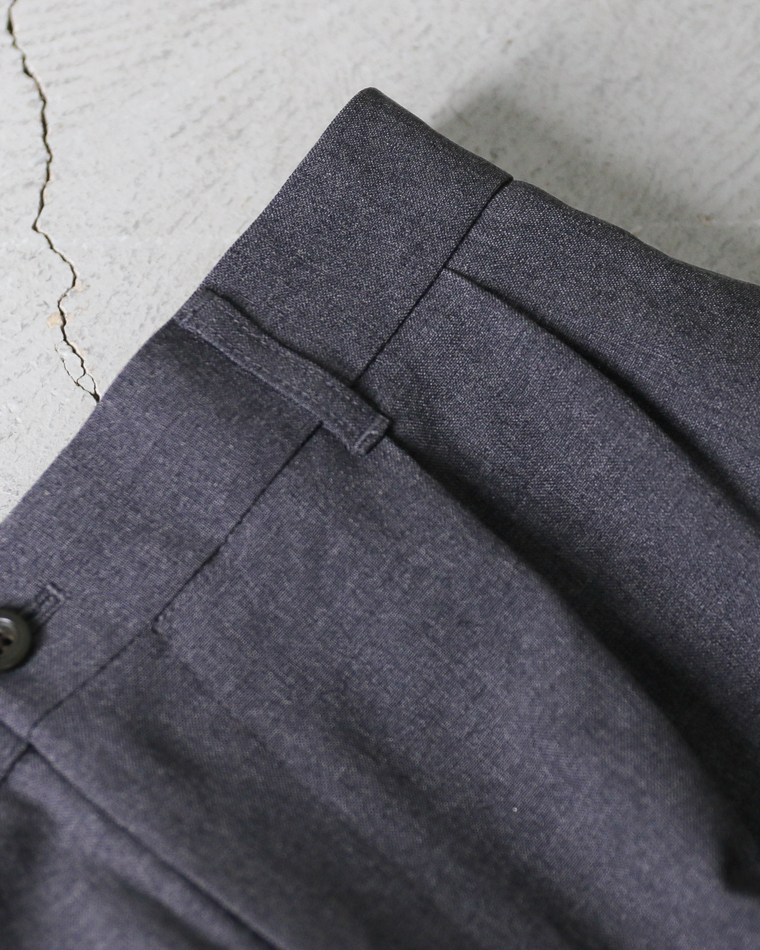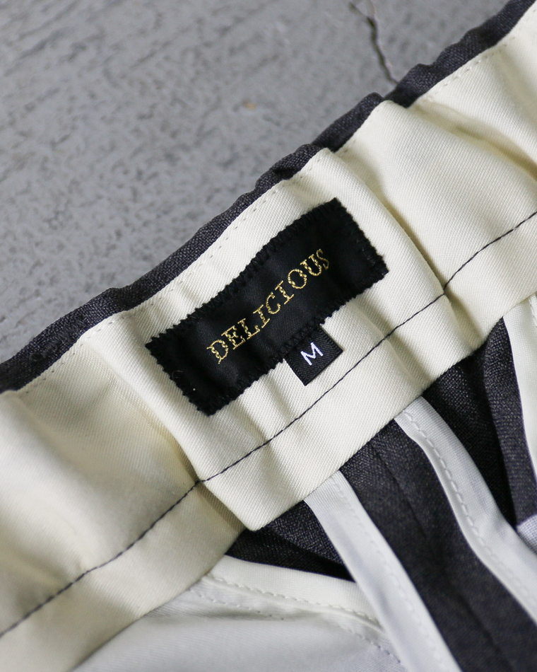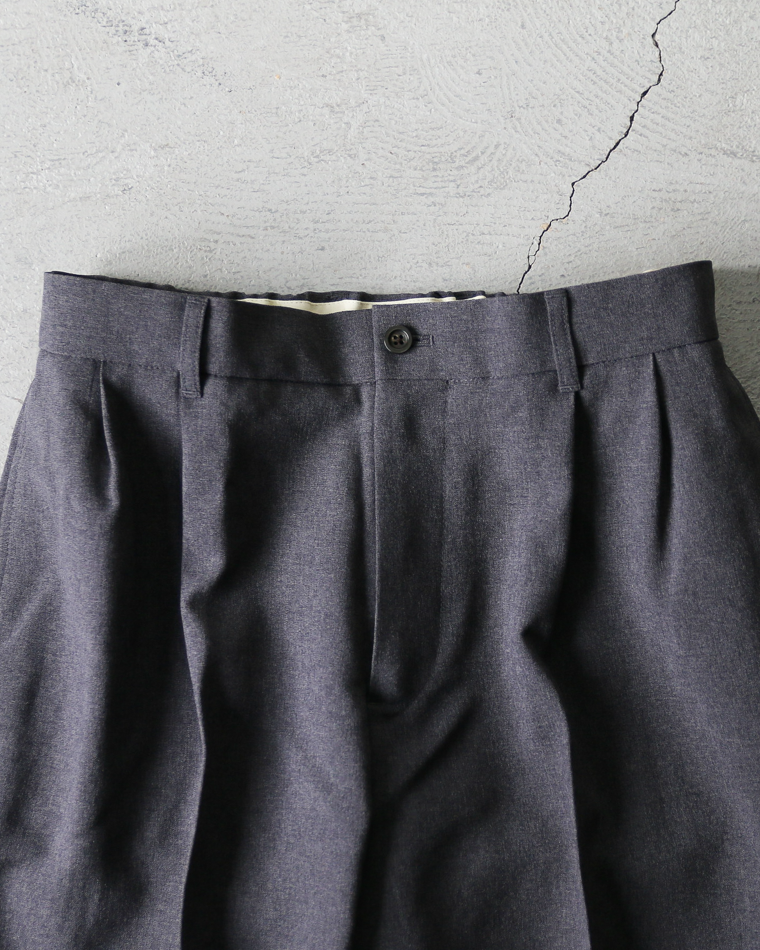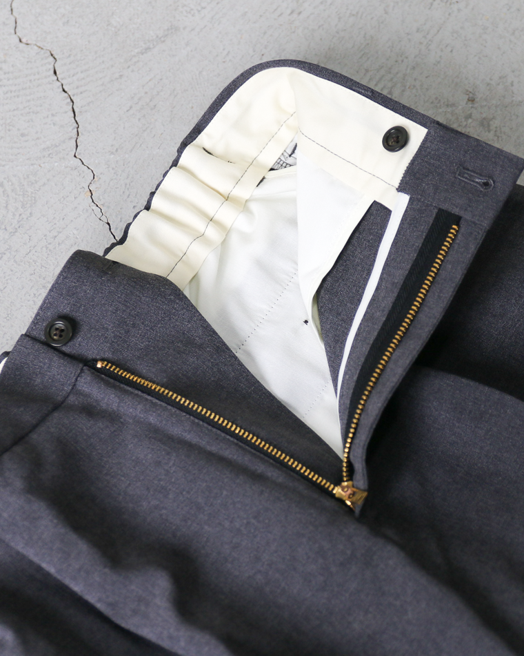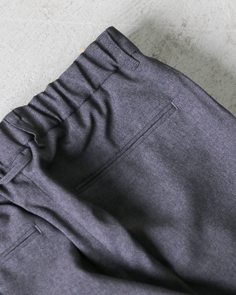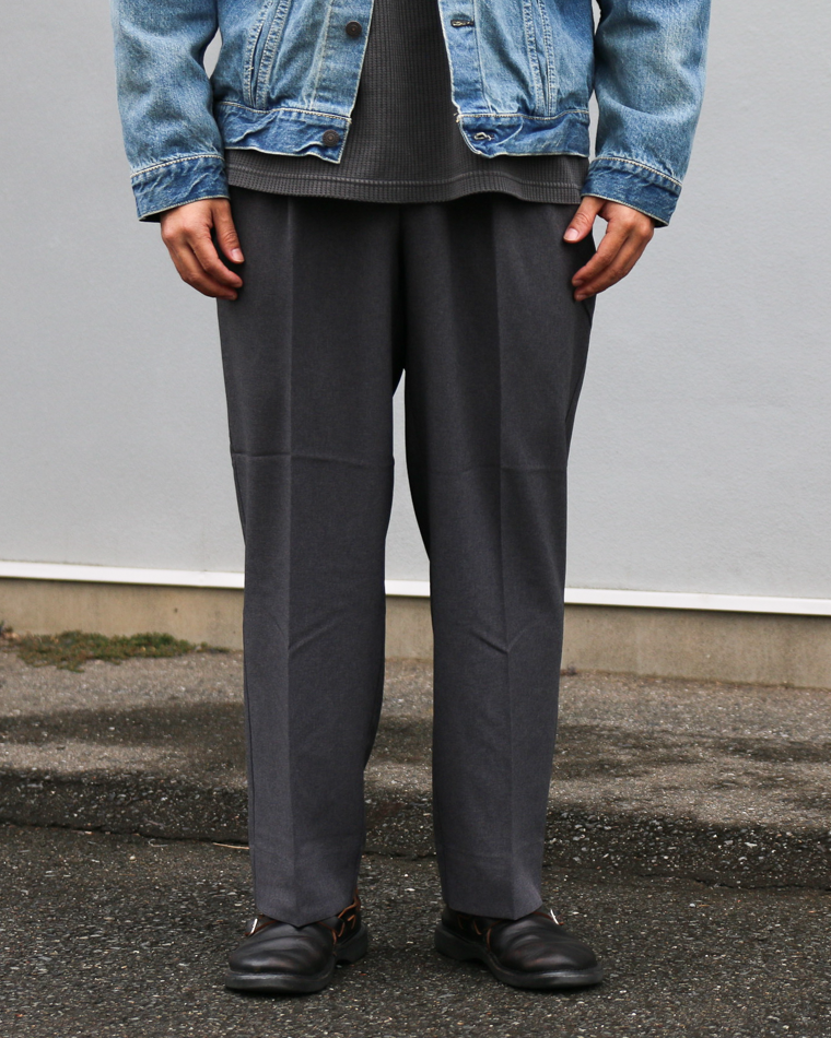 ウエスト後ろ半分はゴム仕様。ツータックを入れて全体に太めのシルエットです。