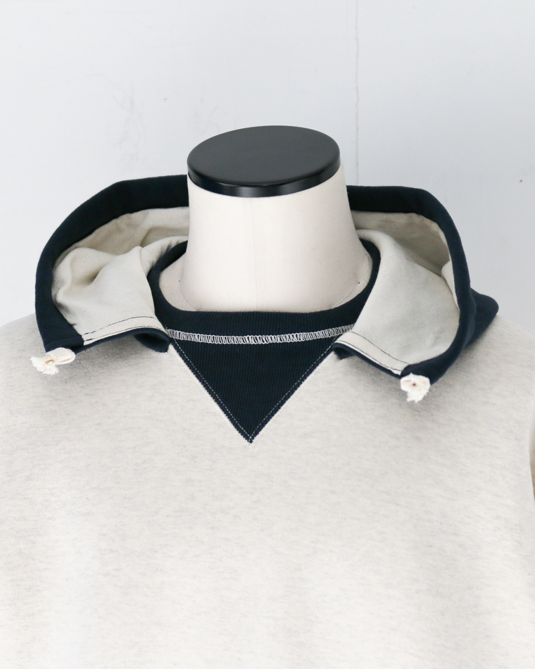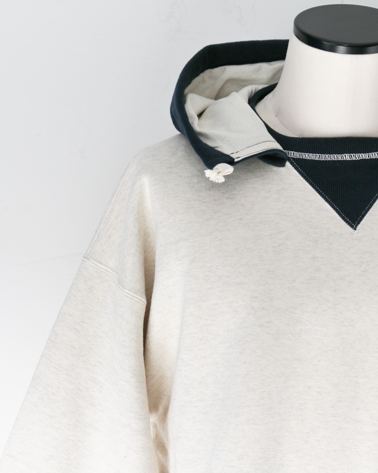 おそらく、フード裏までボディと同じ裏毛だと厚みがありすぎて洗濯したと き本当に乾きが悪い。