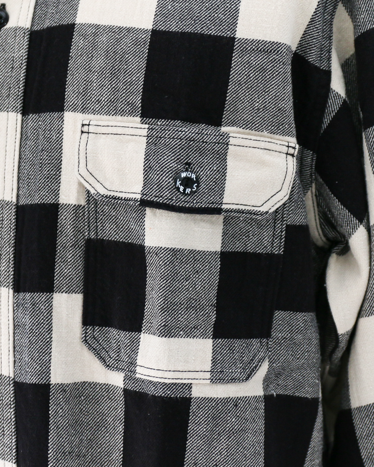 WORKER ワーカーズ Deluxe Shirt, Open Front, デラックスシャツ オープンフロント White Buffalo Check