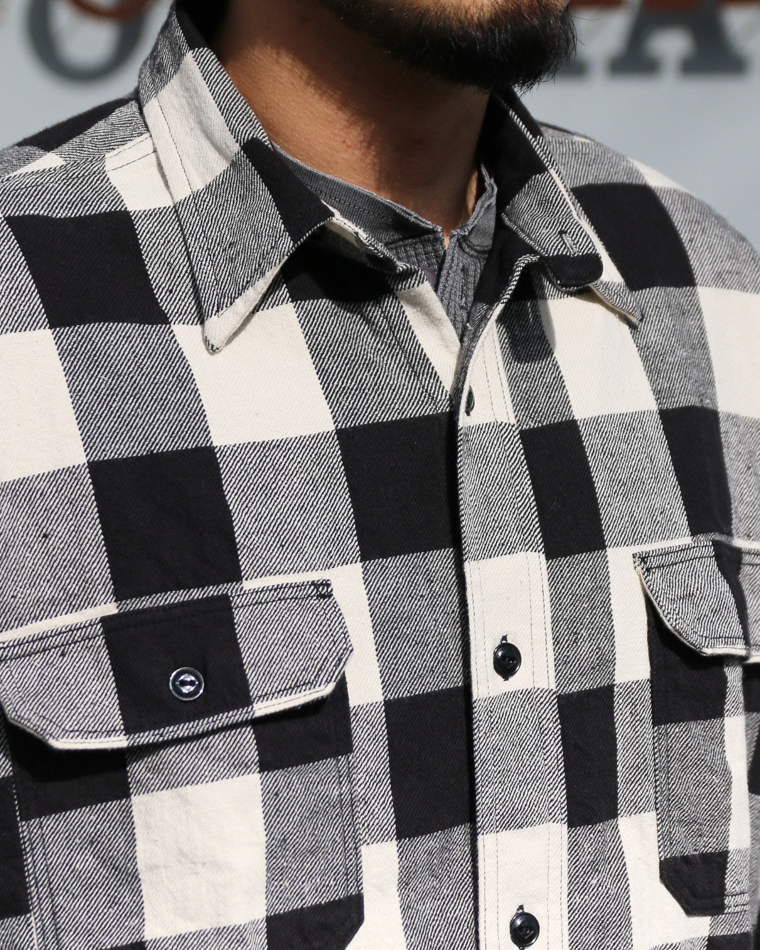 7.5オンスほどのチェック生地で作られたバッファローチェック柄のシャツ。