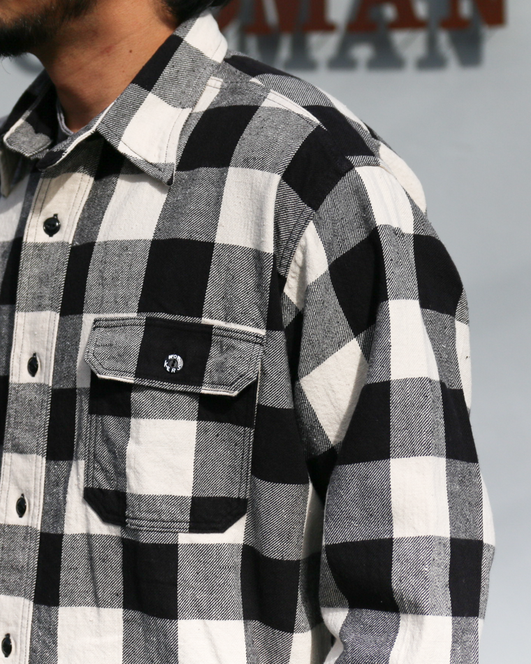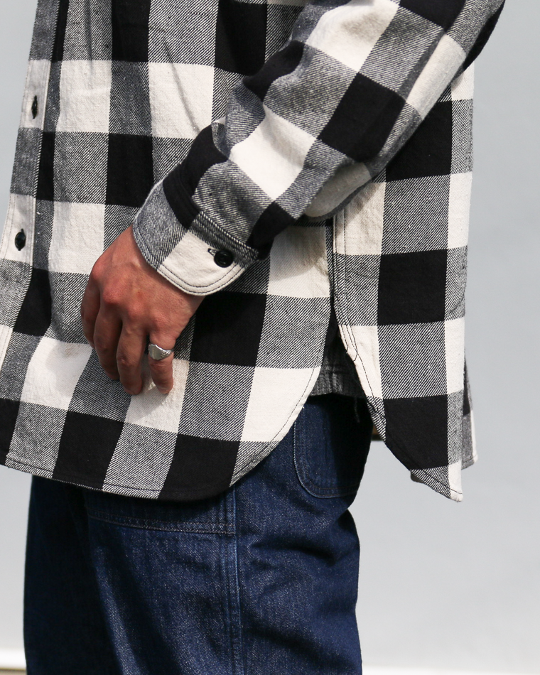 個人的にも好きなバッファローチェックですが、ホワイト×ブラックはなかなか見ないカラーです。