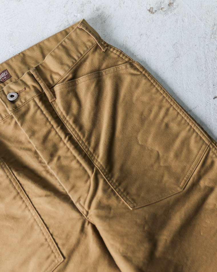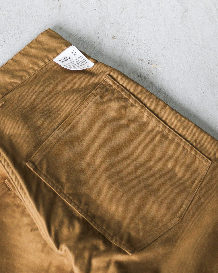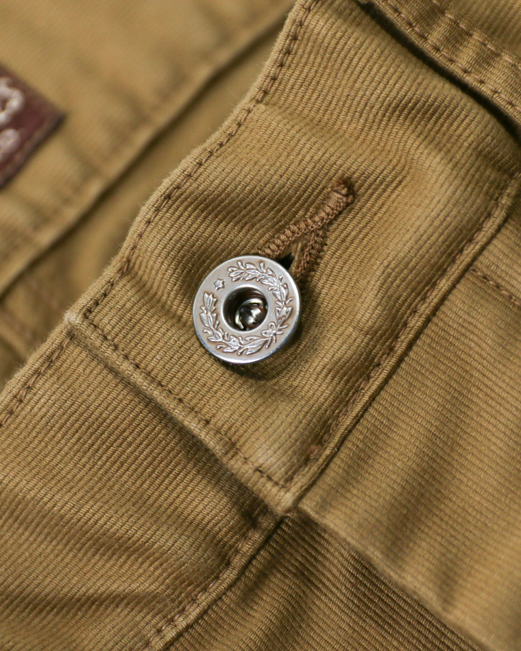 このトラウザースは米陸軍が古くから採用していたデニムパンツの型をベースに、使用する素材をジャングルクロスに置き換えたモデル。