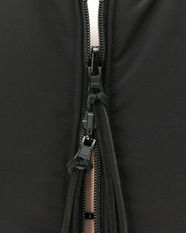 フロントは逆開ダブルZIP仕様&レザーの引手付きでグローブをしたままでも開閉が容易。