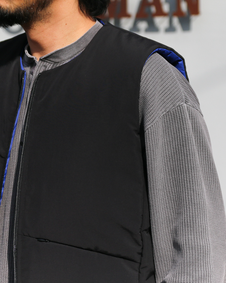 表情の違うリバーシブル仕様でアウター&インナーとして様々なスタイルに汎用性の高い新定番ベストが出来上がりました。