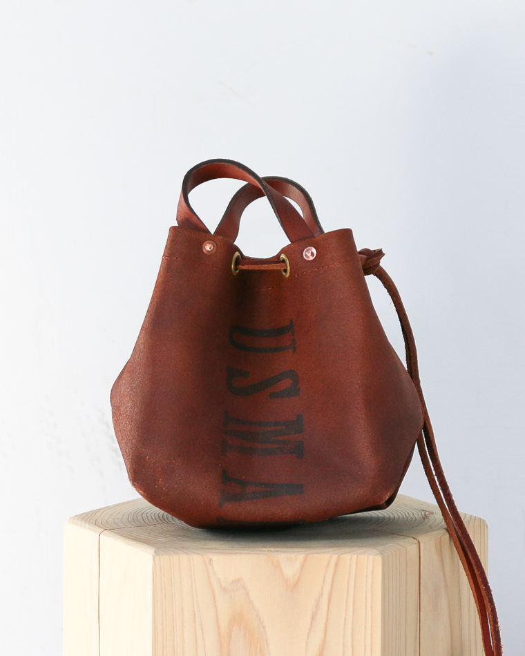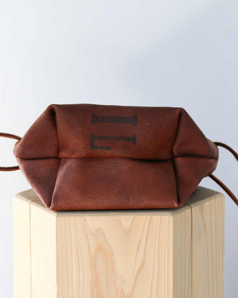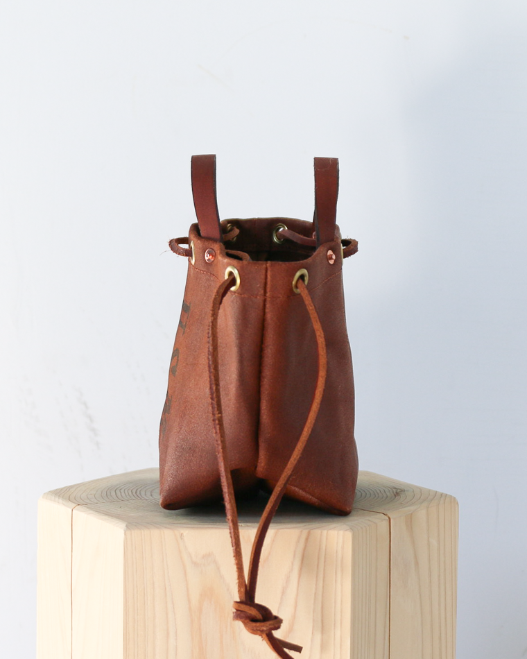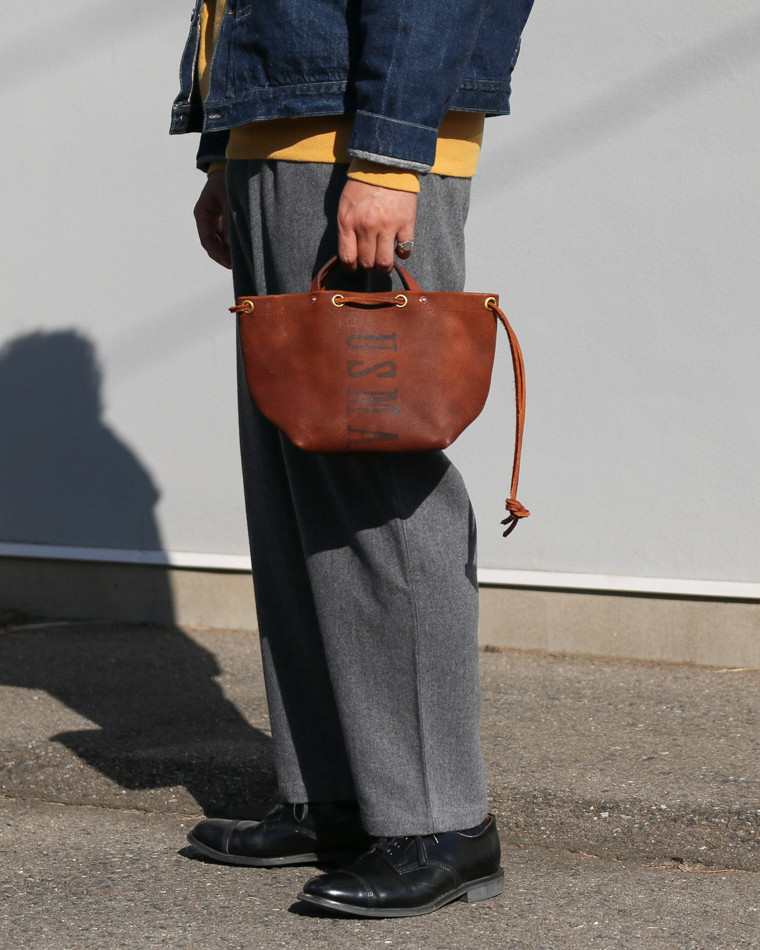 身の回り品の他に、眼鏡や小さなポーチ入れて丁度よいサイズの巾着型の雰囲気抜群のバッグ。