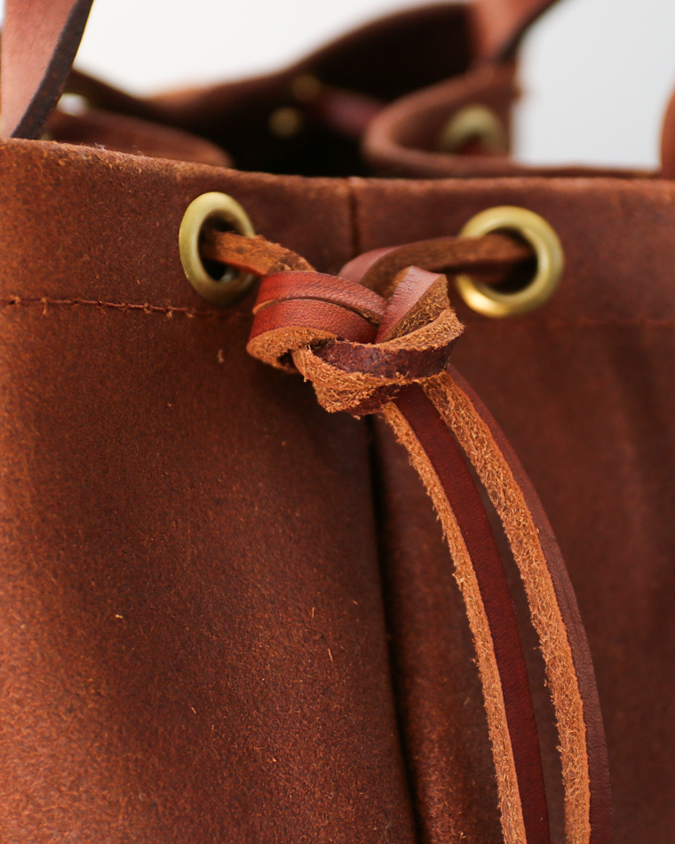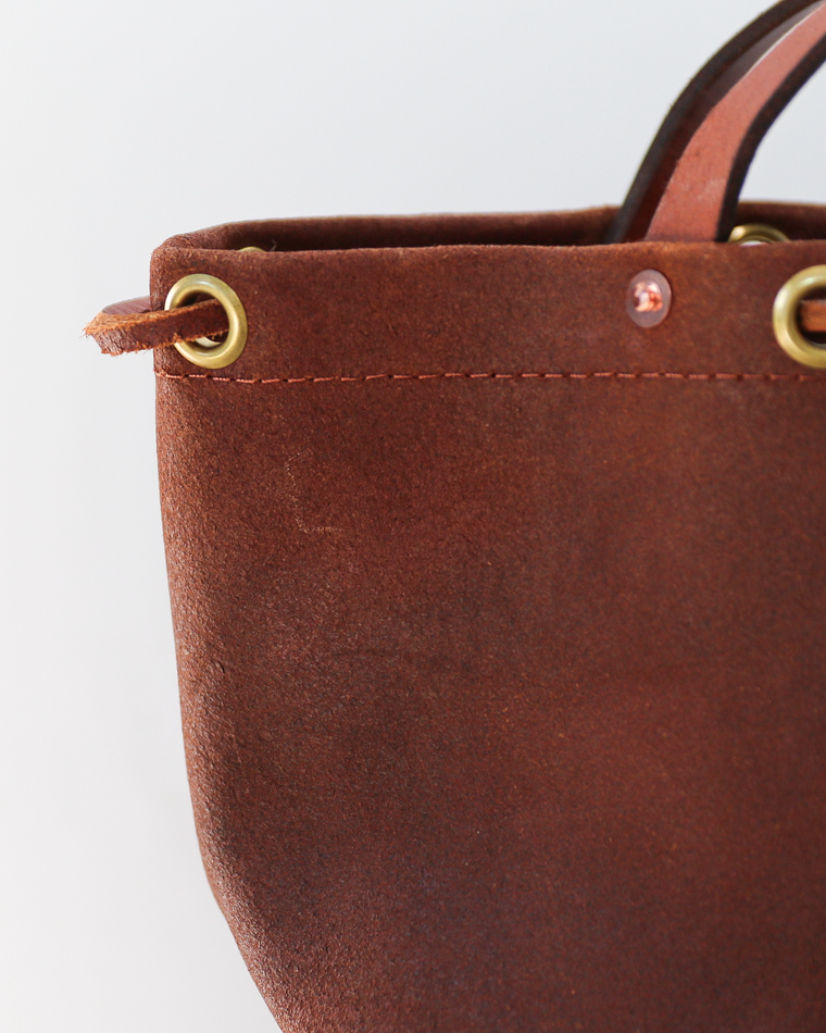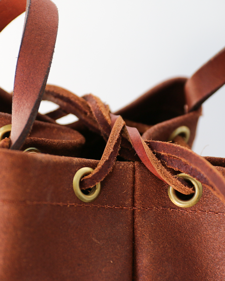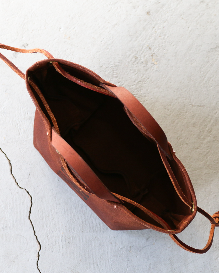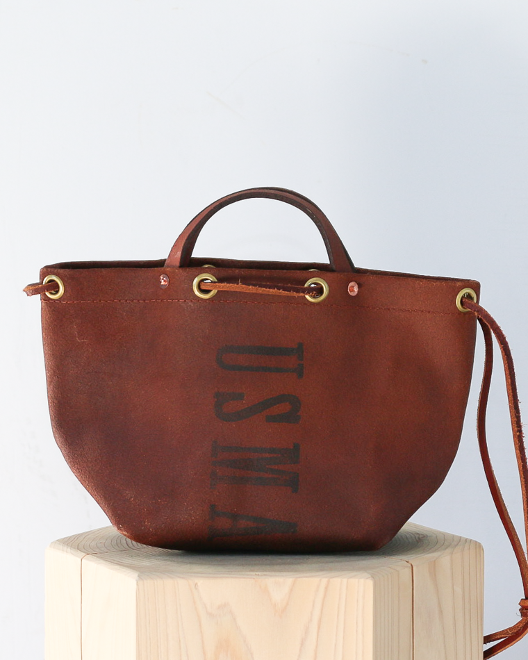 身の回り品の他に、眼鏡や小さなポーチ入れて丁度よいサイズの巾着型の雰囲気抜群のバッグ。