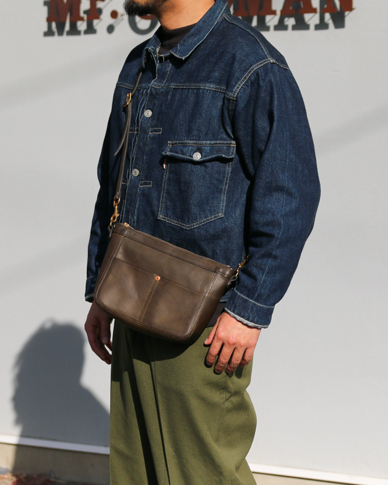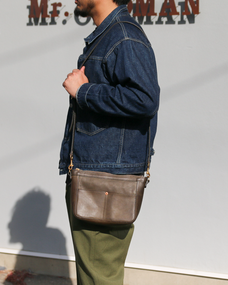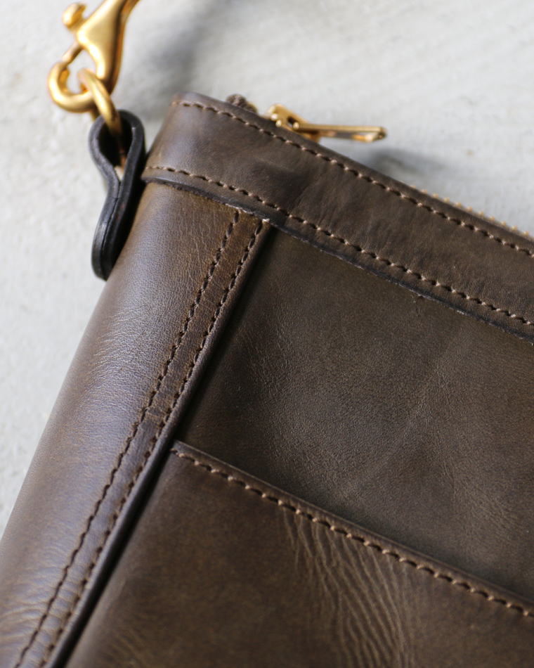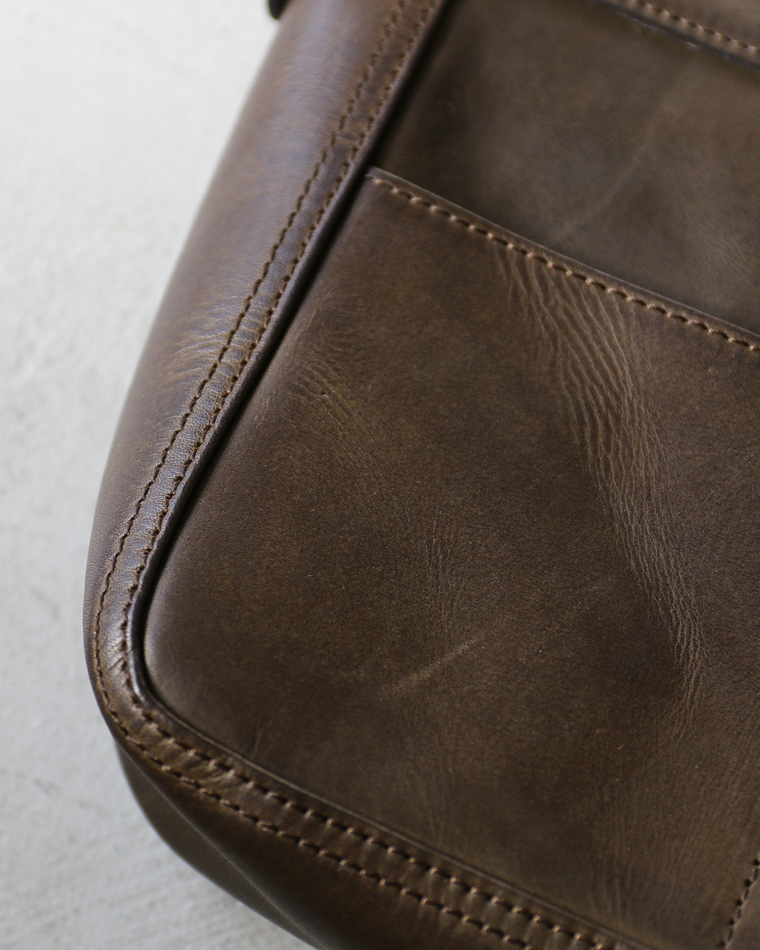 独自のコガシ加工によりヴィンテージのような風合いに仕上げたオリジナルレザー「OLD OIL」を使用。